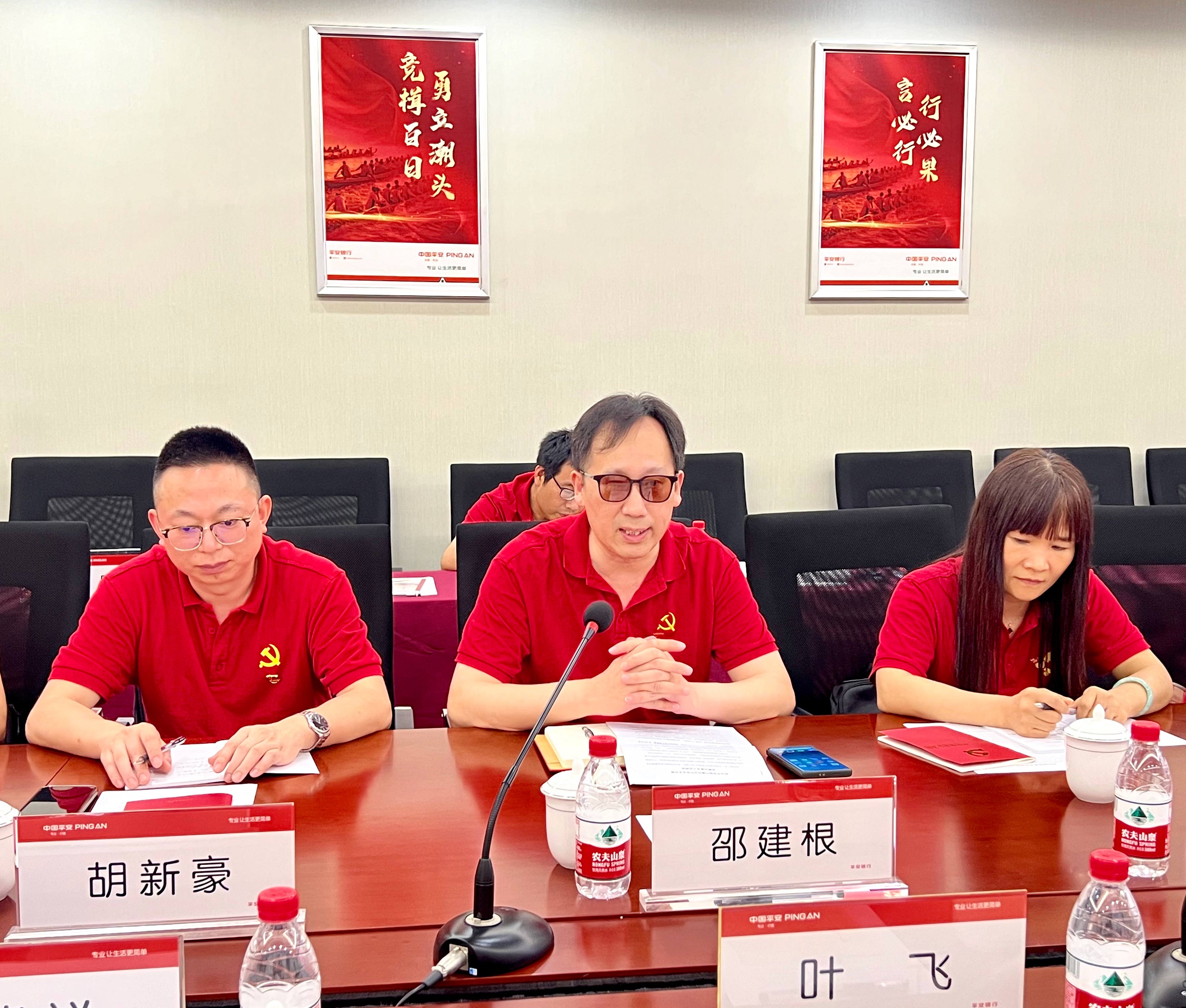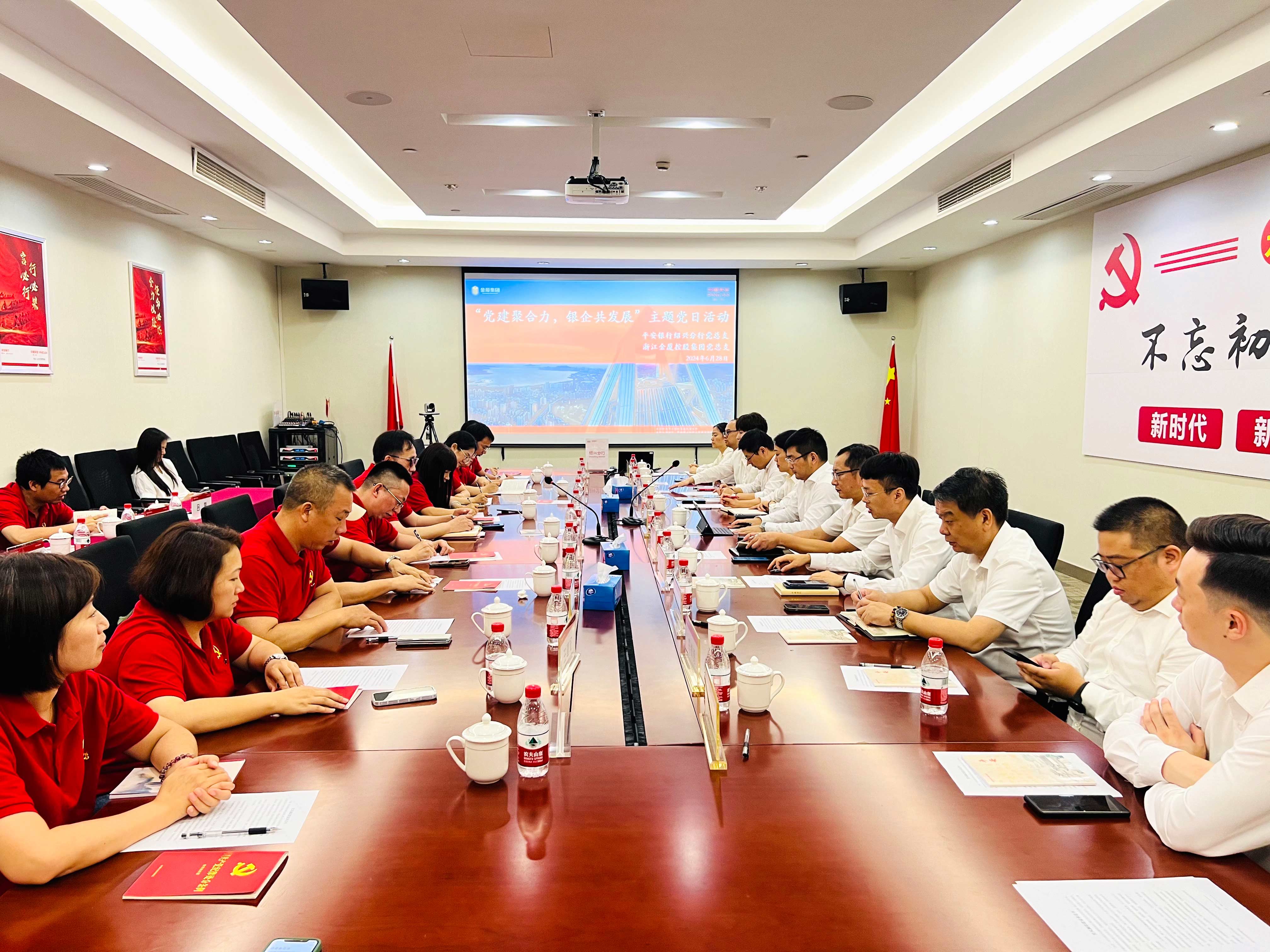 參觀結(jié)束后,所有黨員一同前往平安銀行紹興分行本部參加銀企座談會。在開場中,葉飛行長代表平安銀行紹興分行熱烈歡迎金廈集團的黨員干部們來到紹興、走進紹興分行,并對平安銀行的歷史沿革和業(yè)務脈絡(luò)進行了簡要介紹。葉行長表示,金廈集團是紹興分行合作時間最久的一家優(yōu)質(zhì)民企,雙方在長達15年的合作中始終不離不棄,打下了深厚的互信合作基礎(chǔ),樹立了良好的銀企合作典范。他希望雙方未來以此次黨建共建為基礎(chǔ),進一步加強交流、深化合作,共同開創(chuàng)雙贏未來。