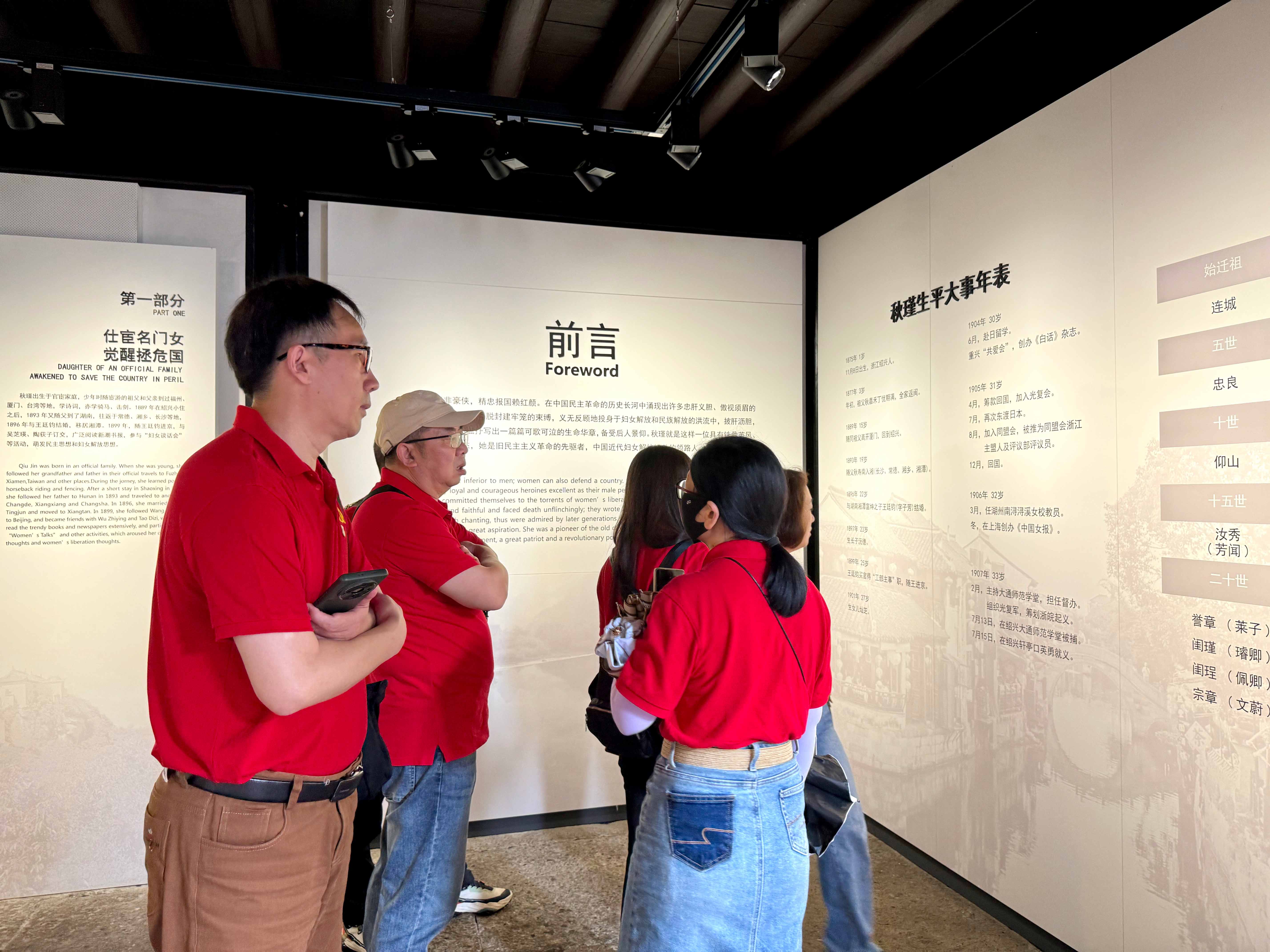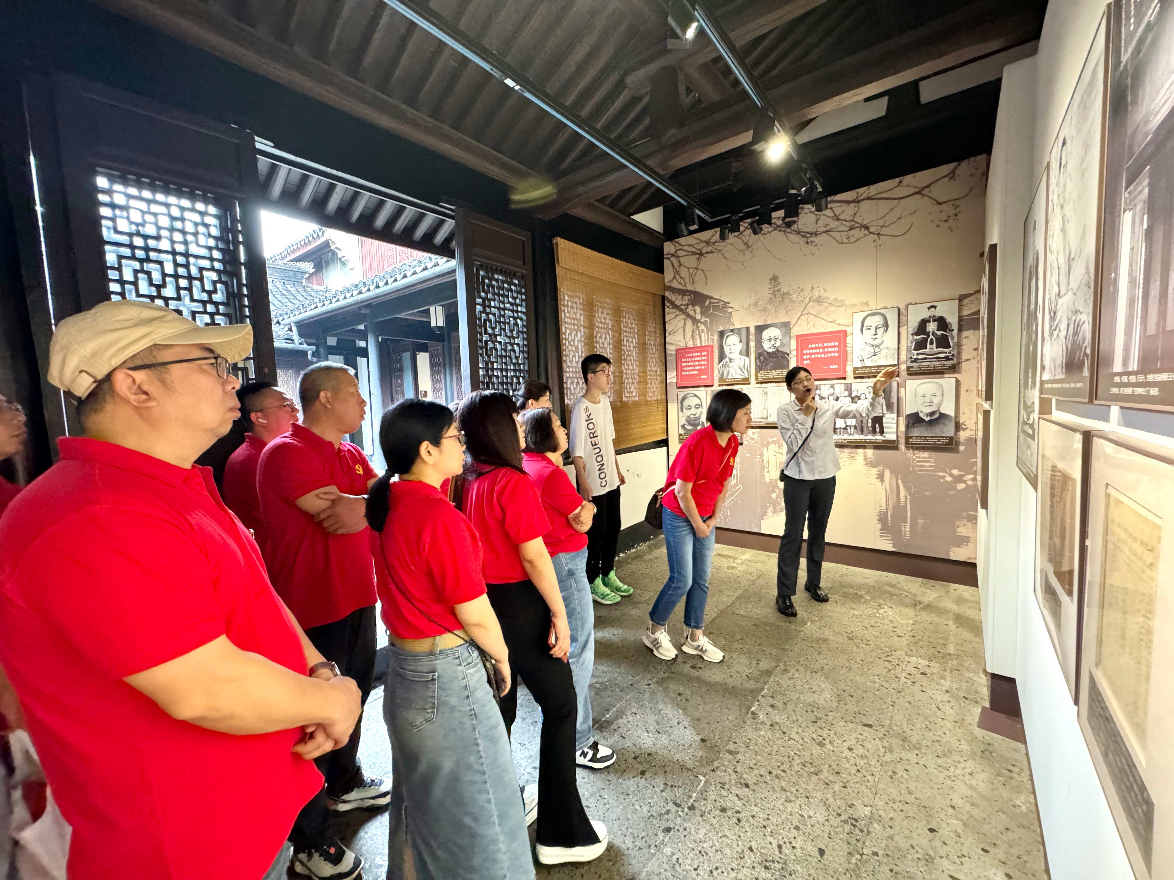 金廈團隊一路奔赴,抵達紹興后第一時間來到了位于越城區(qū)的秋瑾故居。這是一座充滿歷史沉淀的古樸建筑,這里曾經(jīng)是秋瑾出生成長的地方,也是她投身革命事業(yè)的起點。故居內(nèi)陳列著大量關(guān)于秋瑾從事革命事業(yè)的圖片和文獻資料,大家認真參觀展館,在歷史的回聲中感受秋瑾這位偉大女性短暫而輝煌的人生軌跡。