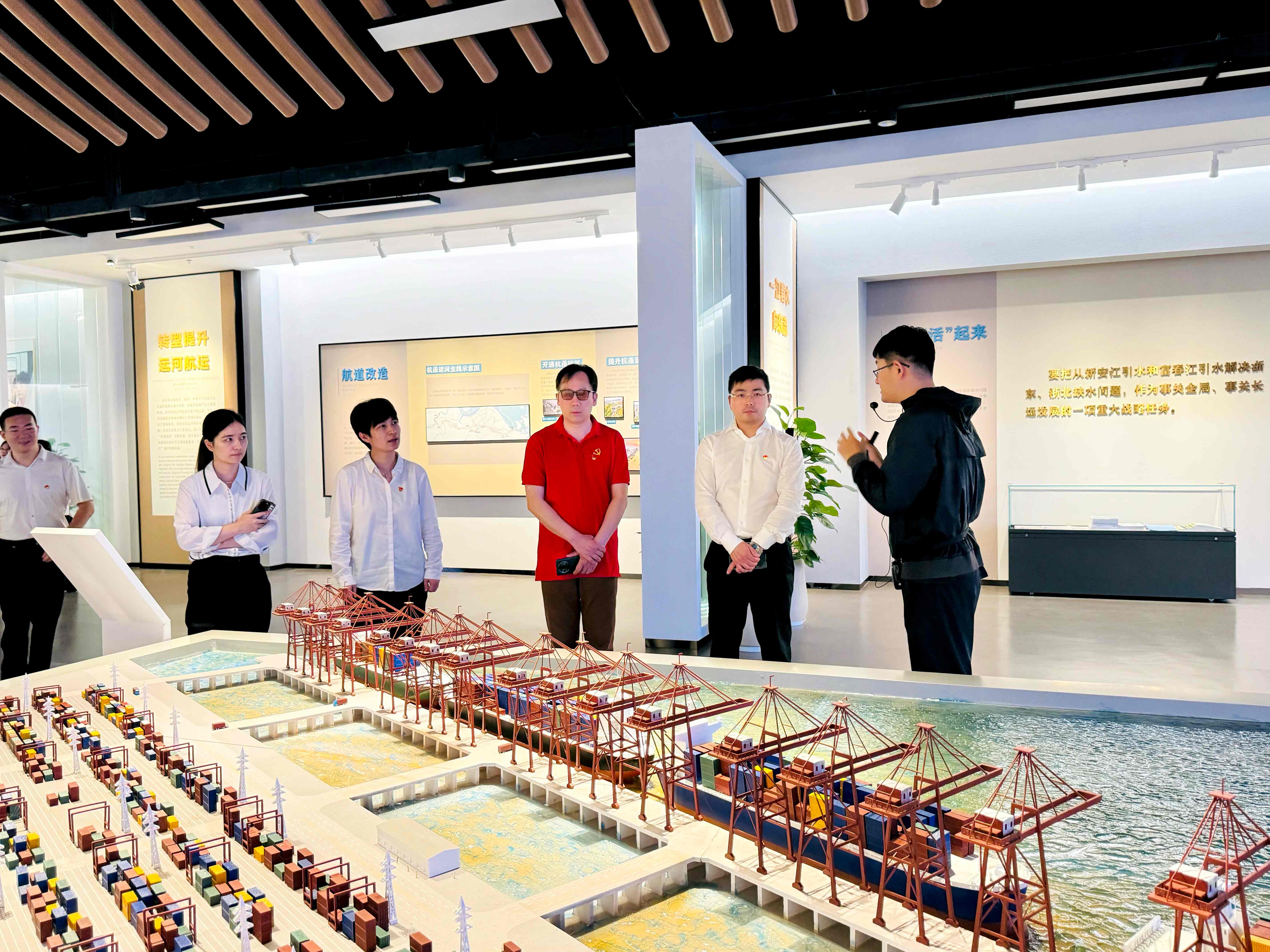 28日下午,為進一步發(fā)揮黨建引領(lǐng)作用,譜寫銀企共建合作新篇章,金廈集團黨總支與平安銀行紹興分行行長葉飛帶隊的黨總支部全體黨員們聯(lián)合開展黨建聚合力,銀企共發(fā)展主題黨日活動,雙方黨員一起沿著習總書記去年考察浙江時的足跡走進浙東運河博物館。浙東運河博物館位于越城區(qū)浙東運河文化園內(nèi),總建筑面積3.4萬平方米,分為魚米之鄉(xiāng)溯河源、千古名河濟天下、越風河韻鑄人文因河筑夢興浙東、流向未來的幸福河五大展廳,重點反映了2500多年來浙東運河工程體系和水運演變,以及獨特的歷史地位和文化遺產(chǎn)價值。在館內(nèi),全體黨員通過文物展示、視頻呈現(xiàn)和講解員的細致解讀,深入體會了浙東運河千年水脈演變的厚重底蘊,領(lǐng)會到習總書記關(guān)于大運河文化建設(shè)的重要指示精神,也在歷史文脈中感受源遠流長的中華文明。